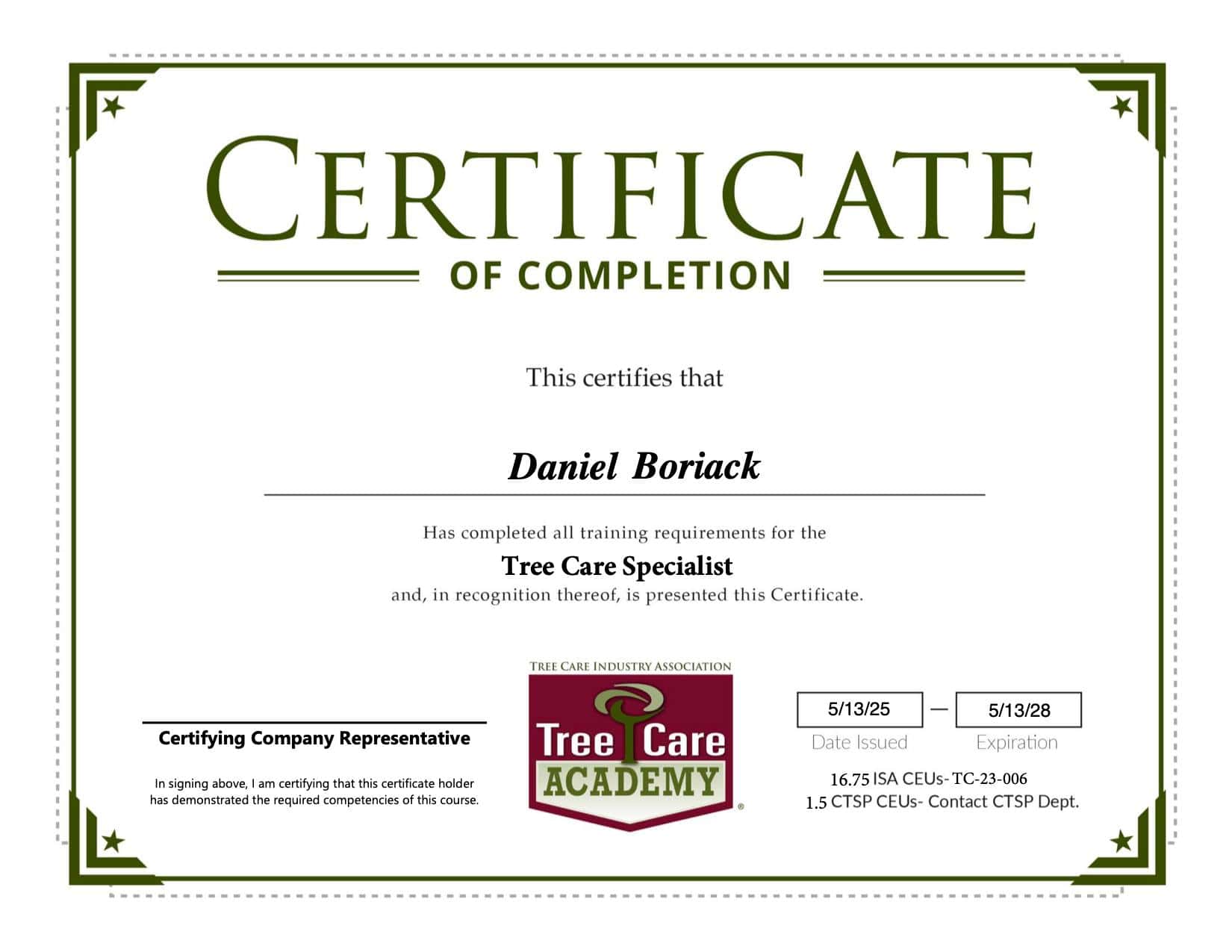 From the beginning, I’ve been determined to be a tree expert, not just another “chainsaw jockey.” This is why I took the time and effort to become a TCIA Certified Tree Care Specialist. This certification demonstrates a commitment to the highest standards of safety, quality, and professionalism.